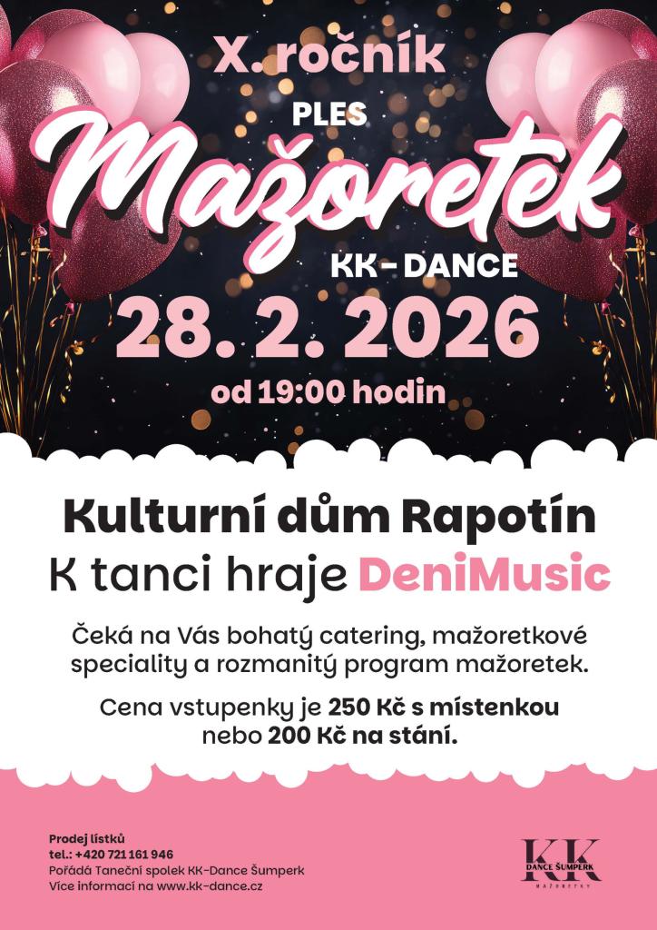 K tanci hraje DeniMusicČeká na Vás bohatý catering, mažoretkové speciality a rozmanitý program mažoretek.