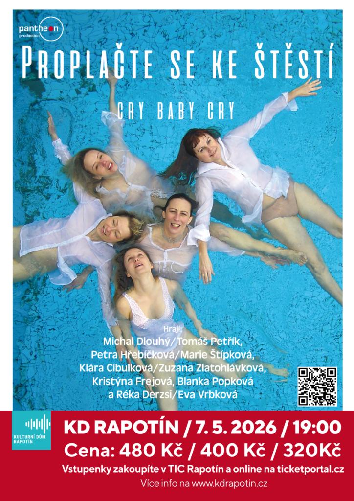 Cry Baby Cry, které vás zavede na cestu plnou humoru, přemýšlení a objevů. Pod vedením zkušených koučů Michala Dlouhého nebo Tomáše Petříka se pět žen vydá na dobrodružství života, aby zjistily, zda je možné naučit se být šťastným. Toto představení již změnilo životy mnohých diváků, kteří po návštěvě divadla odcházeli s novým vhledem do vlastního hledání štěstí. Svitla naděje, že štěstí není něco, co se musí neustále hledat, ale něco, co můžeme objevovat v každodenním životě, díky novým perspektivám a pochopení. Nenechte si ujít příležitost stát se součástí této nezapomenutelné cesty. Cry Baby Cry není jen obyčejné divadelní představení, je to zážitek, který může změnit váš pohled na život. Přijďte a buďte svědky, jak pět žen na jevišti prožívá pestrý svět emocí a ambicí na cestě za svým štěstím.